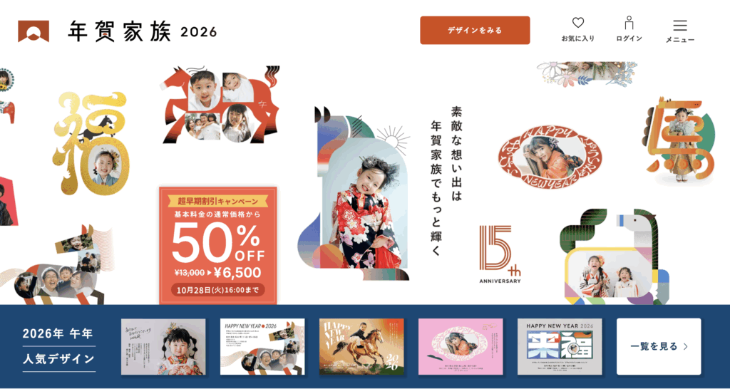 1.おしゃれ・写真品質で選ぶなら「年賀家族」