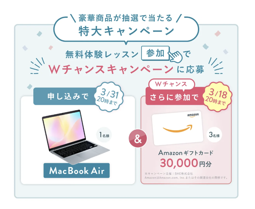 - MacBook Airなど豪華景品が抽選で当たるキャンペーン実施中