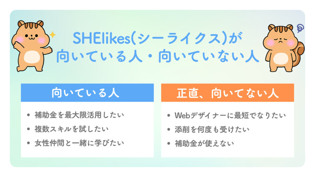 SHElikes(シーライクス)が向いている人・向いていない人
