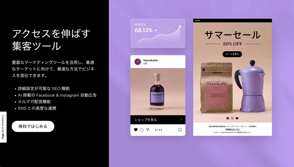「Wixで作りたいけど、本格的なビジネス利用は不安…」という方は、コスパ良く集客に強いサイトが最適です。
